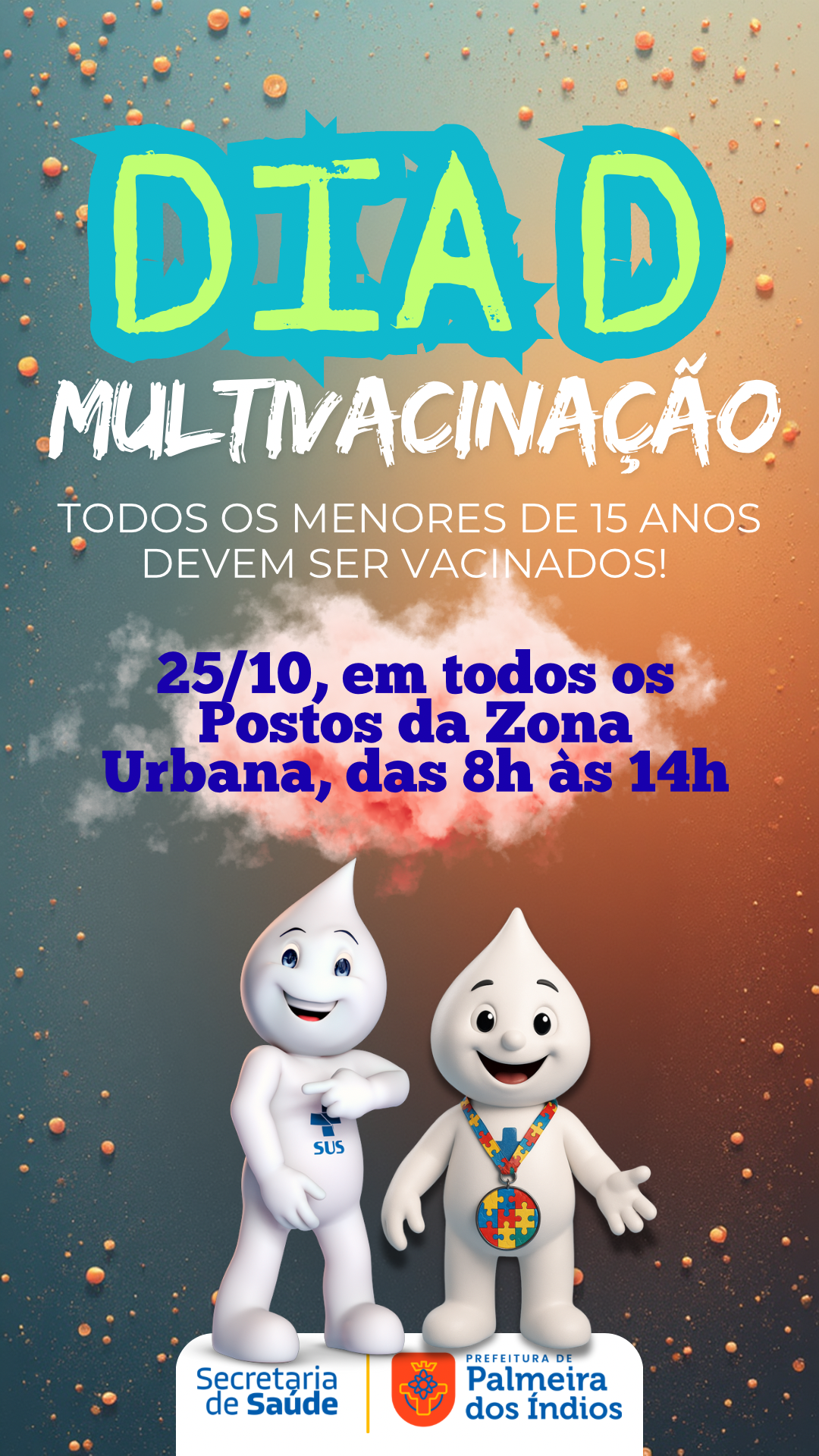 Neste sábado (25) acontecerá o DIA D da Campanha de Multivacinação em Palmeira dos Índios. O objetivo é atualizar as cadernetas de vacinação de todos os menores de 15 anos de idade. A campanha termina no dia 31 de outubro.