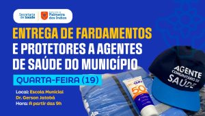A Prefeitura, por meio da Secretaria Municipal de Saúde, realizará nesta quarta-feira (19) a entrega de 167 kits de fardamento destinados aos agentes comunitários de saúde da rede municipal. A solenidade de entrega acontecerá na Escola Dr. Gerson Jatobá Leite, situada no bairro São Cristóvão.