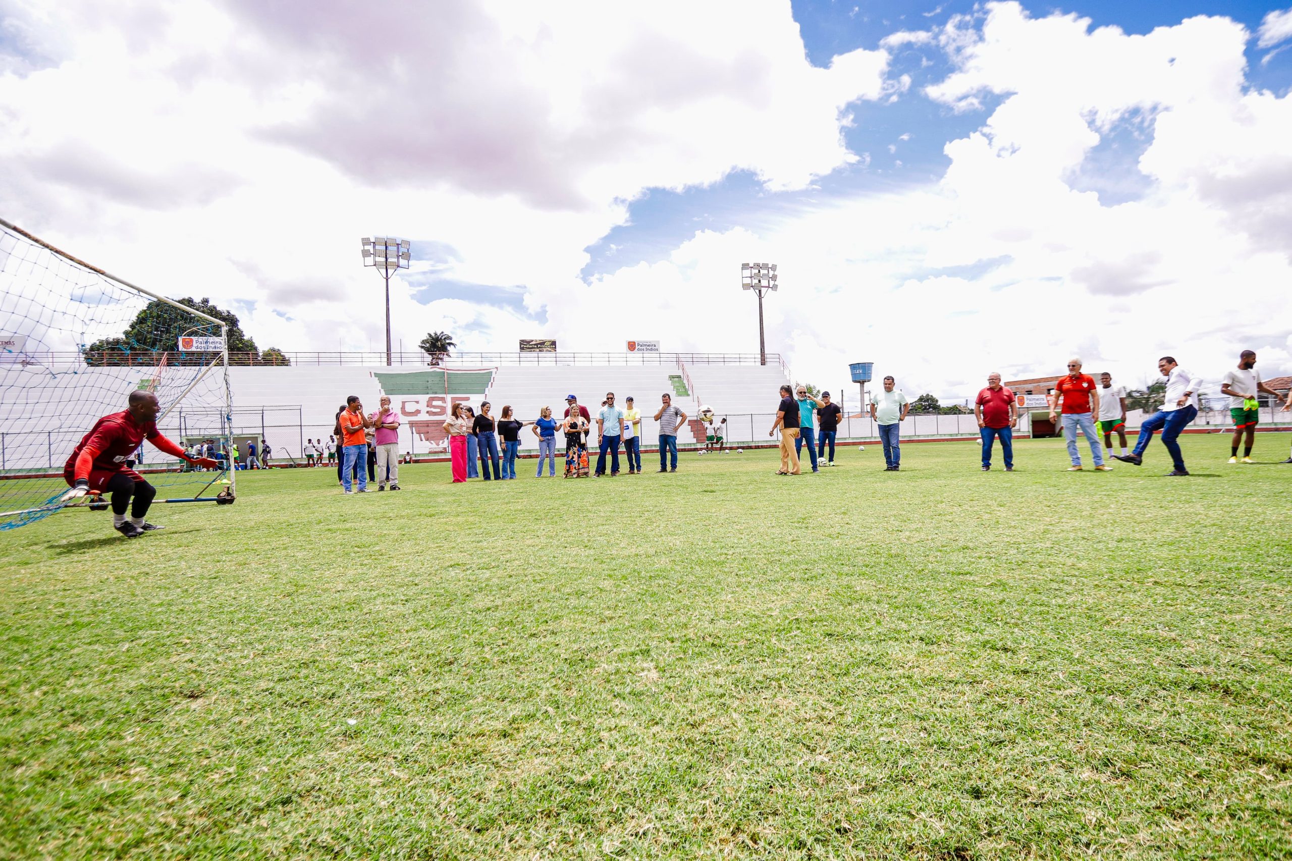 A prefeita Tia Júlia, acompanhada do secretário de Estado de Relações Federativas e Internacionais, Júlio Cezar, do secretário municipal de Esporte Flávio Targino e da equipe de governo, visitou nesta sexta-feira (9) o Estádio Municipal Juca Sampaio. A comitiva vistoriou os serviços de manutenção do campo e das instalações esportivas e aproveitou a ocasião para conhecer o novo elenco do Clube Sociedade Esportiva (CSE), que enfrentará o CRB neste sábado (10), em Maceió, pela Copa Alagoas.