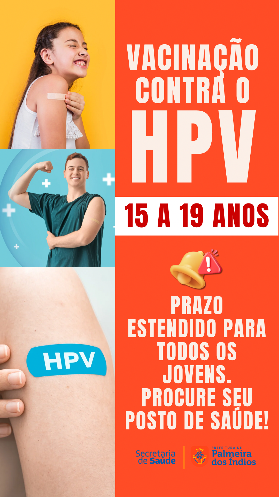 A Secretaria de Saúde de Palmeira dos Índios, por meio do setor do Programa Nacional de Imunização (PNI), informa que a vacina contra o HPV para jovens de 15 a 19 anos foi prorrogada até o final do primeiro semestre de 2026.